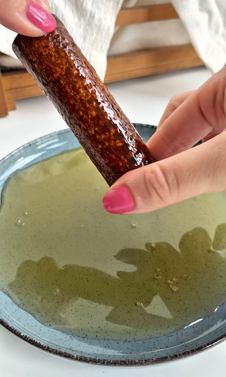 Cannellonilerimizi çok ince bir katman bal sürüyoruz ve hindistan cevizinin içinde gezdiriyoruz.